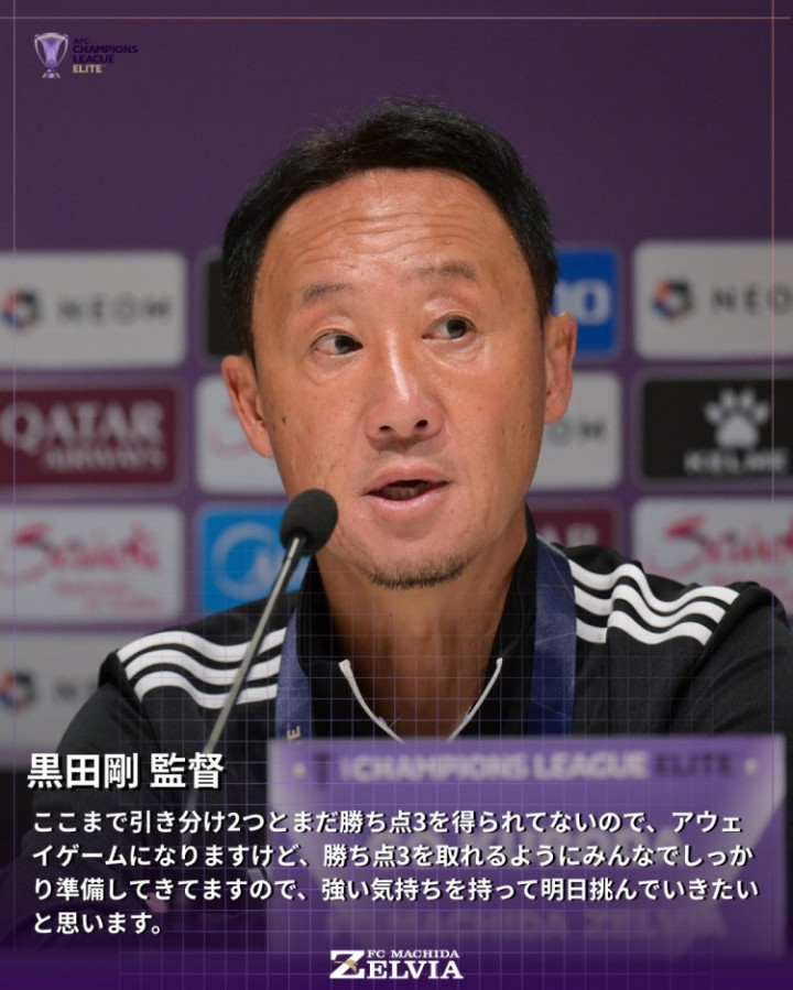 黑田刚表示:“我们目前只打平了两场,还没有拿到3分,而且我们是客场比赛。但我们一直在努力备战,争取拿到3分,所以我们决心以强大的心态迎接明天的比赛。”