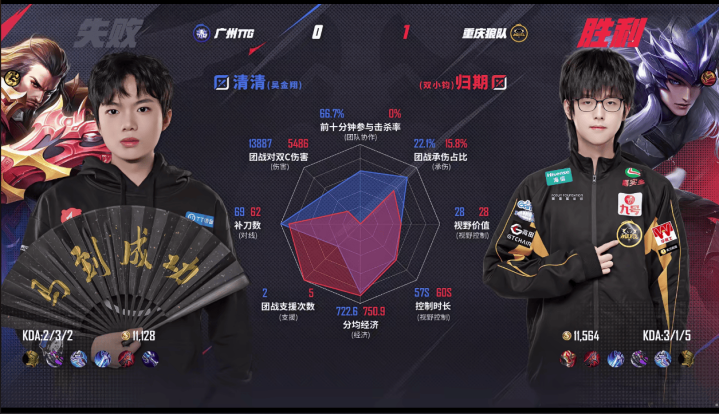 狼队/TTG第一局数据对比: 小胖镜突袭击杀率200%