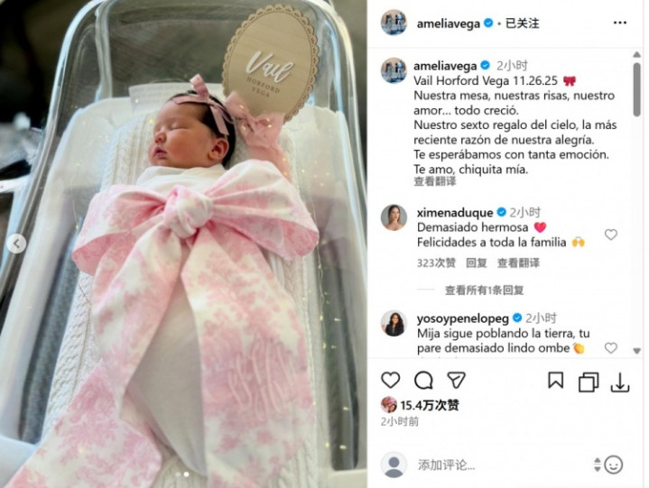 直播吧12月1日讯今日霍福德妻子阿米莉亚·维加更新INS,宣布迎来第6个孩子的降生。