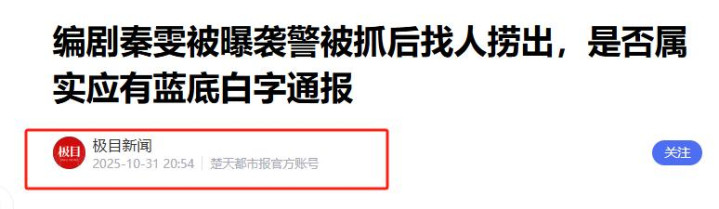 极目新闻|编剧秦雯被曝袭警被抓后找人捞出,是否属实应有蓝底白字通报.2025