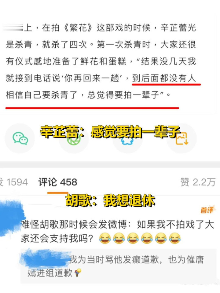 辛芷蕾更是吐槽,拍《繁花》的时候,光是杀青就杀了4次。